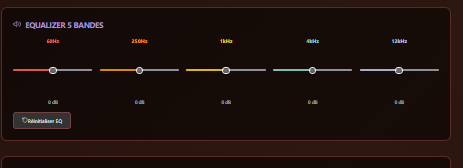 Contrôle précis des fréquences (60Hz, 250Hz, 1kHz, 4kHz, 12kHz) pour sculpter votre son